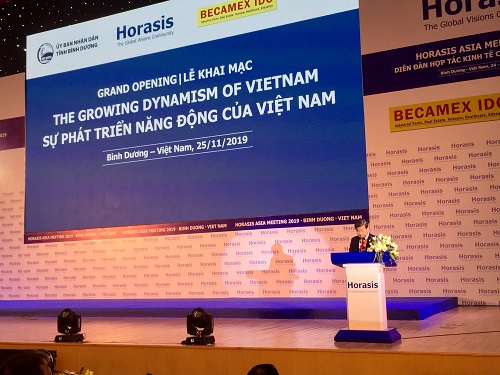 Sáng 25/11, Diễn đàn hợp tác kinh tế châu Á (Horasis 2019) chính thức khai mạc tại Thành phố mới tỉnh Bình Dương. Đây là lần thứ 2 liên tiếp Bình Dương đăng cai tổ chức sự kiện quốc tế với sự tham dự của 1.500 đại biểu trong và ngoài nước, là các chính khách, các nhà khoa học, lãnh đạo các tập đoàn hàng đầu của khu vực và thế giới từ 60 quốc gia, vùng lãnh thổ.