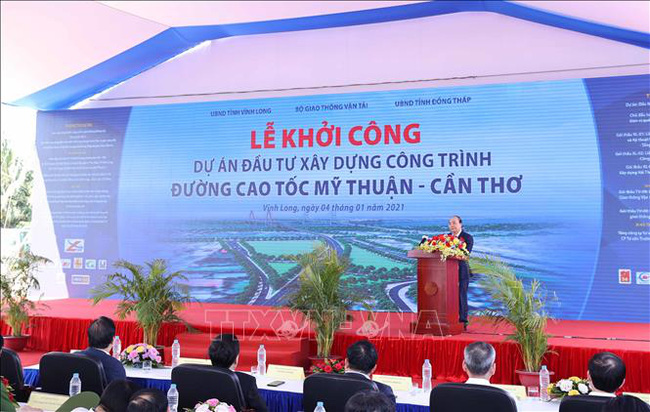 Phát biểu tại lễ khởi công, Thủ tướng Nguyễn Xuân Phúc nhấn mạnh ý nghĩa chiến lược của dự án cao tốc Mỹ Thuận - Cần Thơ đối với ĐBSCL.