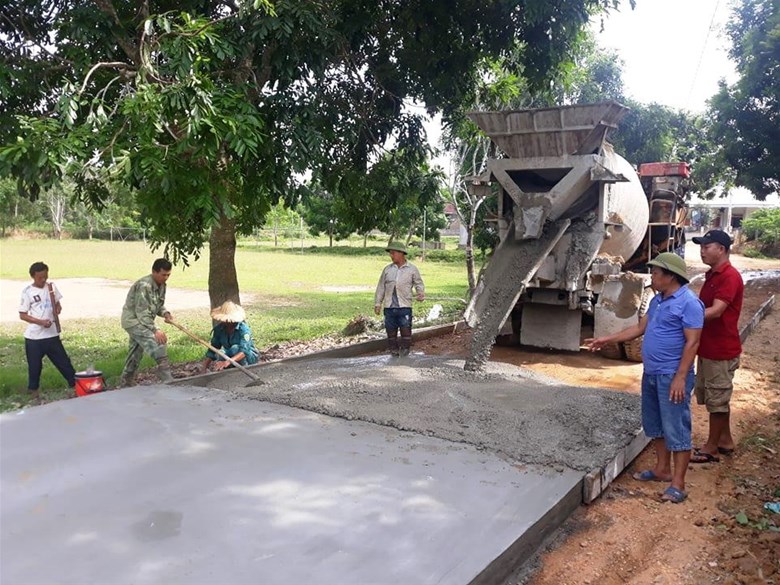 Chúng tôi tìm về xóm Quy Hậu, xã Kỳ Tân, huyện Tân Kỳ, tỉnh Nghệ An một chiều giữa tháng 9 khi bà con nơi đây đang chung tay làm đường bê tông.
