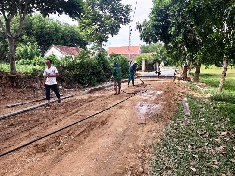 Nhằm giúp bà con đi lại đỡ khó khăn, vất vả, chính quyền xóm, xã đã kêu gọi doanh nghiệp, “mạnh thường quân” ủng hộ tiền mặt, vật liệu làm đường giao thông nông thôn qua xóm Quy Hậu.