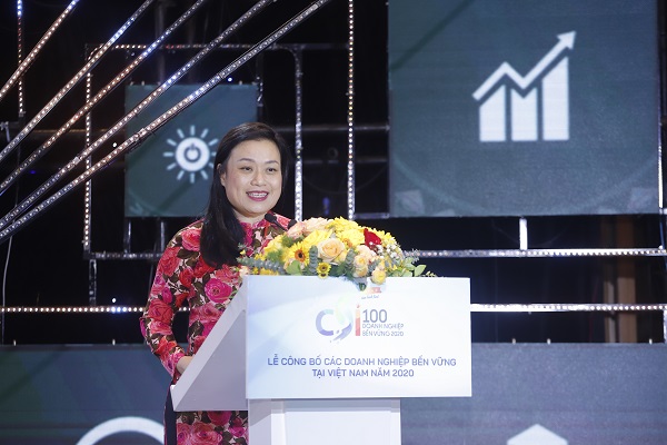 Phó CT nước Đặng Thị Ngọc Thịnh, ông Vũ Tiến Lộc – Chủ tịch VCCI cùng đại diện các doanh nghiệp bền vững 2020