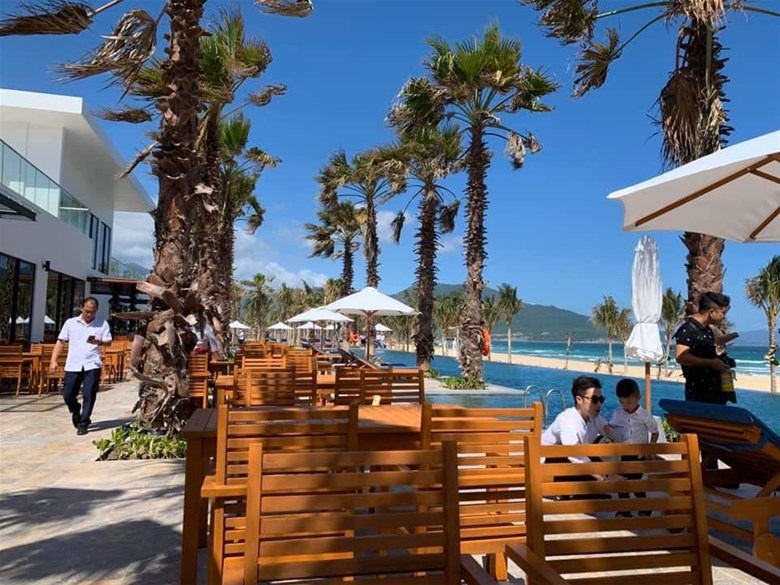Nếu như ban ngày, khu vực hồ bơi với nhà hàng cho bạn cảm giác xanh mát thì đêm đến, không gian đặc quánh vị biển với ánh đèn lung linh phản chiếu dưới mặt nước cho bạn cảm giác như đang chạm vào giấc mơ. Khu vực hồ bơi vì thế được du khách lựa chọn làm nơi thư giãn cho các cuộc vui bất tận.